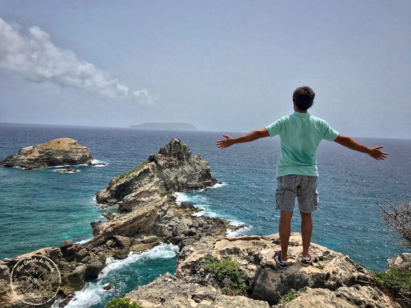 Et si on voit bien l’île de la Désirade et qu’on distingue Marie Galante, il parait que par temps très clair on peut apercevoir aussi Les Saintes et Basse Terre.