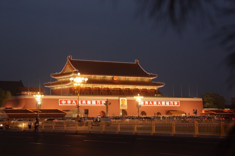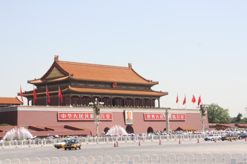 On y accède donc par la place Tian’anmen, en passant la « porte de la paix céleste » (laquelle possède un balcon, du haut duquel Mao a « proclamé la République Populaire de Chine, le 1er octobre 1949 »).