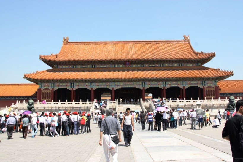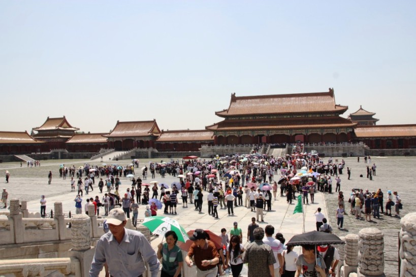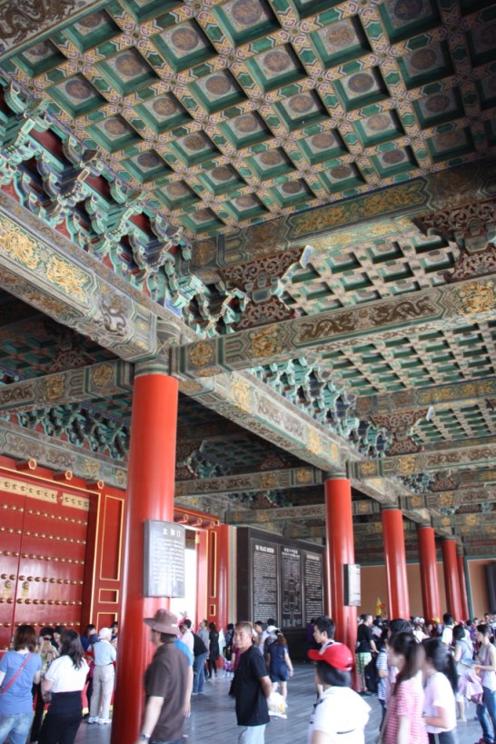 Sinon, Pékin, c’est aussi l’occasion de visiter quelques sites classés au patrimoine de l’UNESCO, dont la fameuse Cité Interdite (ou plus précisément « Cité Pourpre Interdite », pourpre, car il y a du rouge – couleur impériale – partout sur les murs, les poutres… Partout, sauf les toits qui sont oranges…), située face à la tristement célèbre place Tian’anmen (« tristement », dû au mausolée de Mao construit sur cette place aux répressions des manifestations en 1989, ayant fait plusieurs centaines de mort). C’était le siège du pouvoir suprême pendant près de 5 siècles (jusqu’à la révolution de 1911).