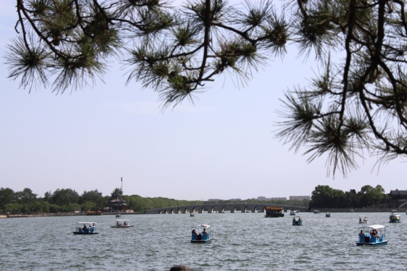 Le lac Kunming est traversé par le pont aux 17 arches et donne accès ainsi à un rocher sur le lac, rocher sur lequel est construit un temple.