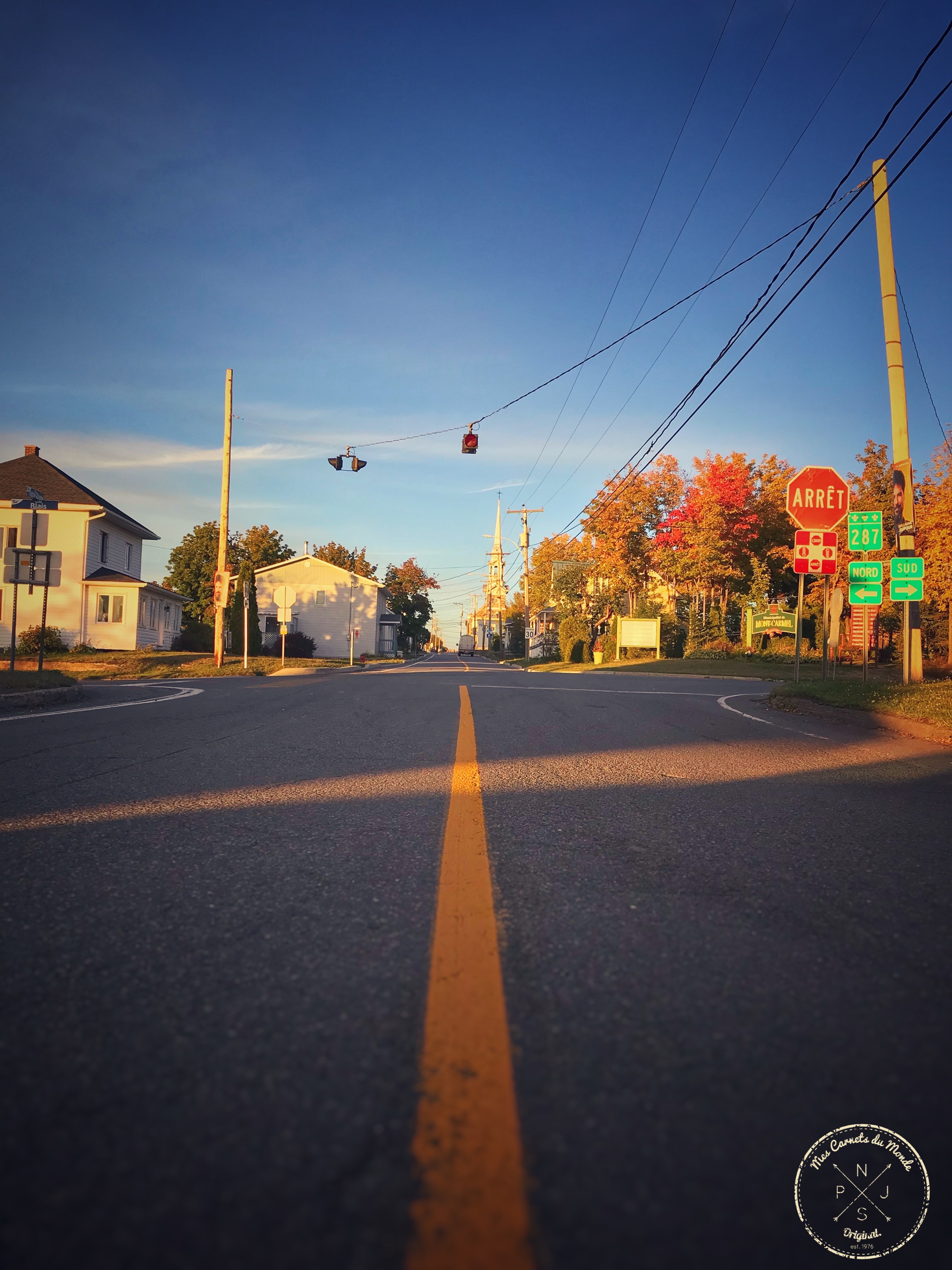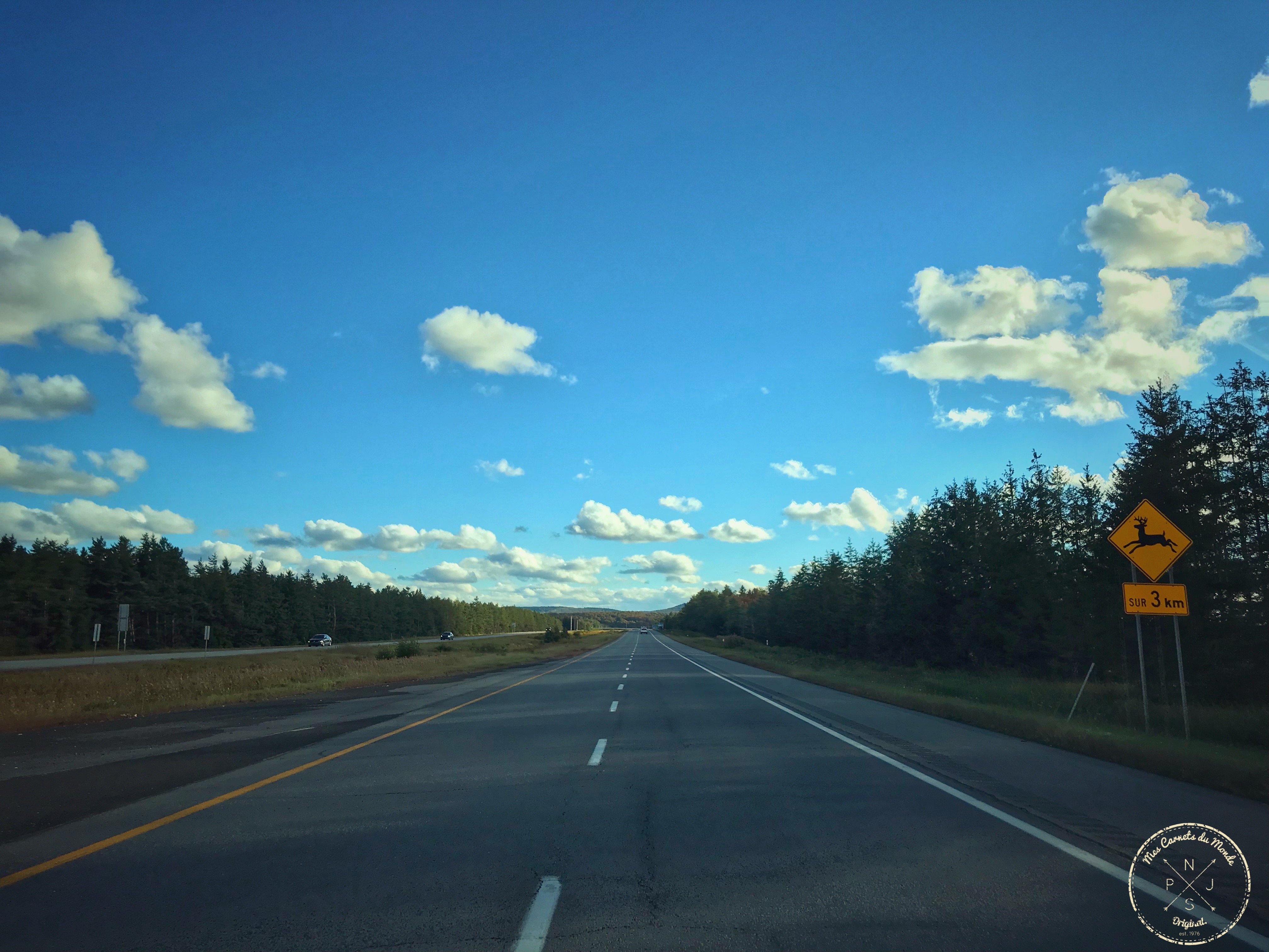 Perdu dans les différents décalages horaires, « ché pu où chu rendu » comme le chantait Robert Charlebois, dans sa chanson Lindberg. Le but est de partir avant l’aube pour éviter les embouteillages spectaculaires de Montréal… Mais le temps de parcourir 3 pâtés de maison, nous nous rendons à l’évidence : ils ont déjà commencé sans nous !