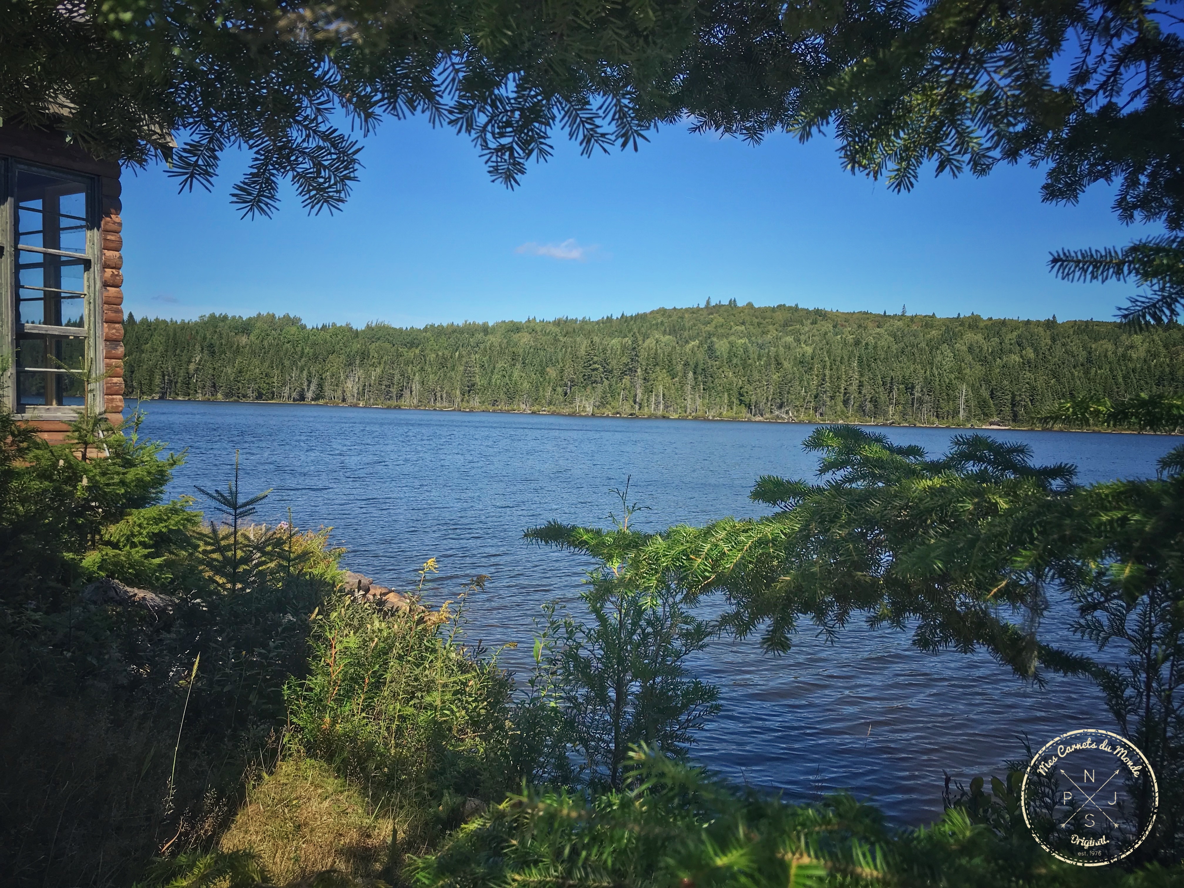 Après 35 minutes de piste à me faire secouer dans tous les sens, au grès des trous et pierres qui font rebondir les roues du van, nous arrivons enfin à bon port… Enfin, ce n’est pas littéralement un port, mais plutôt à « l’Auberge du Baron Ephraïm », une maison toute en rondins de bois qui se dresse fièrement face au lac des « Cinq Mille » au coeur de la forêt des Appalaches.