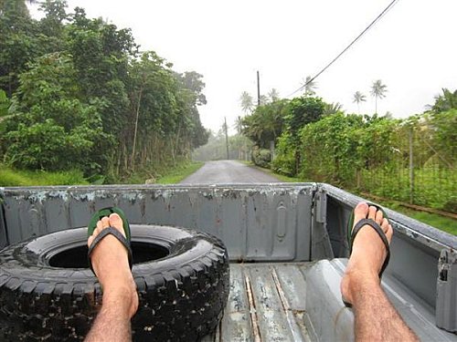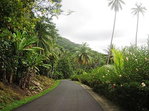 Je suis salué par quelques « tahaaiens » qui se baladent dans les petits villages, ou assis à l’arrière des pick-up qui me doublent.