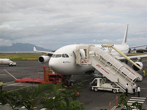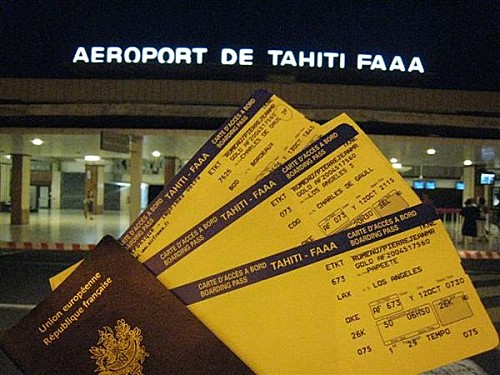 Je me lève aux aurores pour rejoindre l’aéroport de FAAA, m’enregistrer, profiter du lever de soleil en salle d’embarquement.