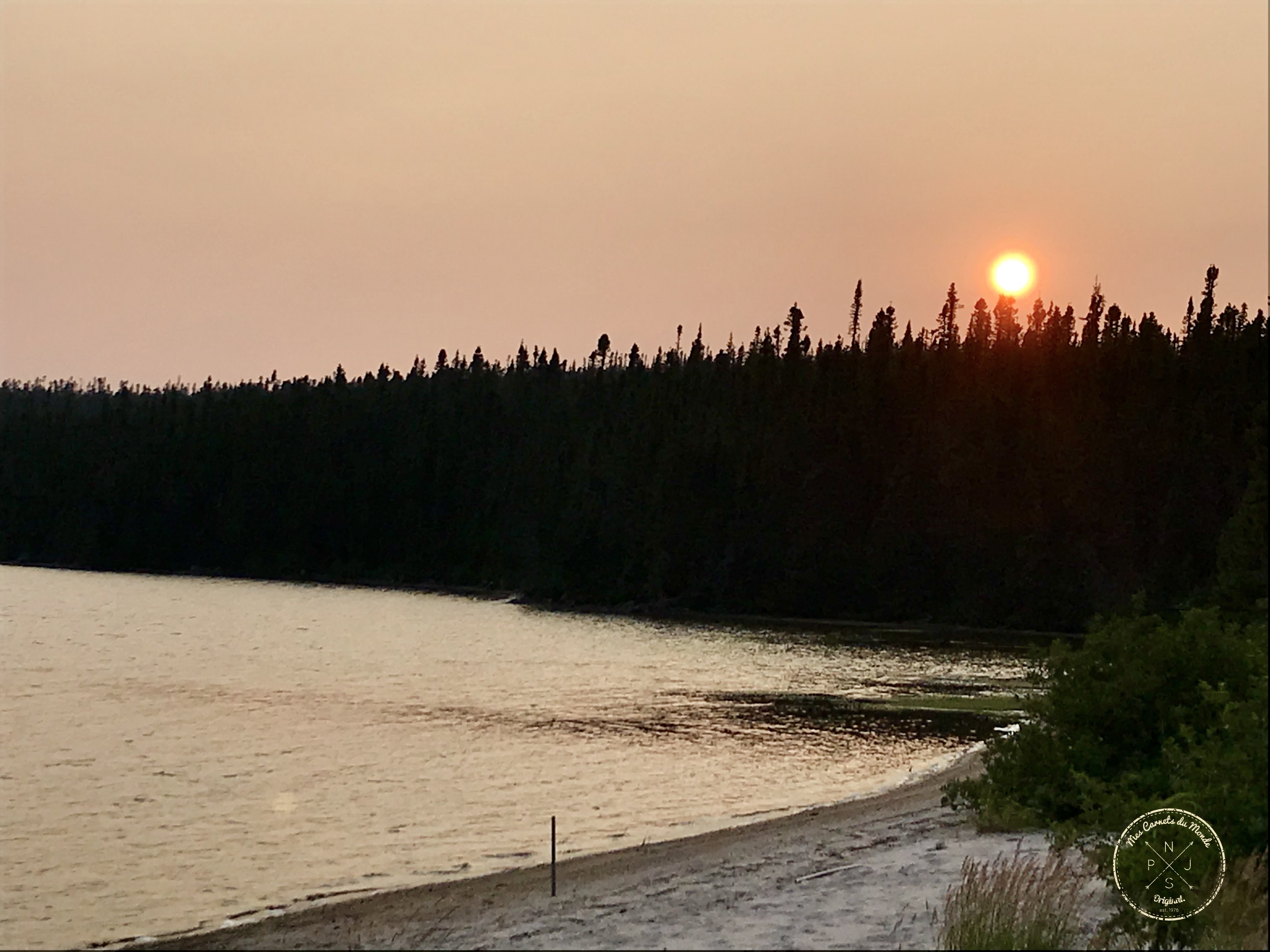 Les nuages dissipés, le soleil nous offre ensuite un autre spectacle de toute beauté à mesure qu’il se rapproche de l’horizon. Caressant délicatement la cime des sapins, le soleil rougissant embrase alors le ciel de mille teintes orange-feu, accompagné des cris rieurs des hurons (une espèce de canard sauvage, symbole retrouvé sur les pièces de monnaies) ; faire de l’écotourisme, c’est apprécier le spectacle offert par dame nature (oui, j’ai pas trouvé plus kitsch comme phrase…) !
