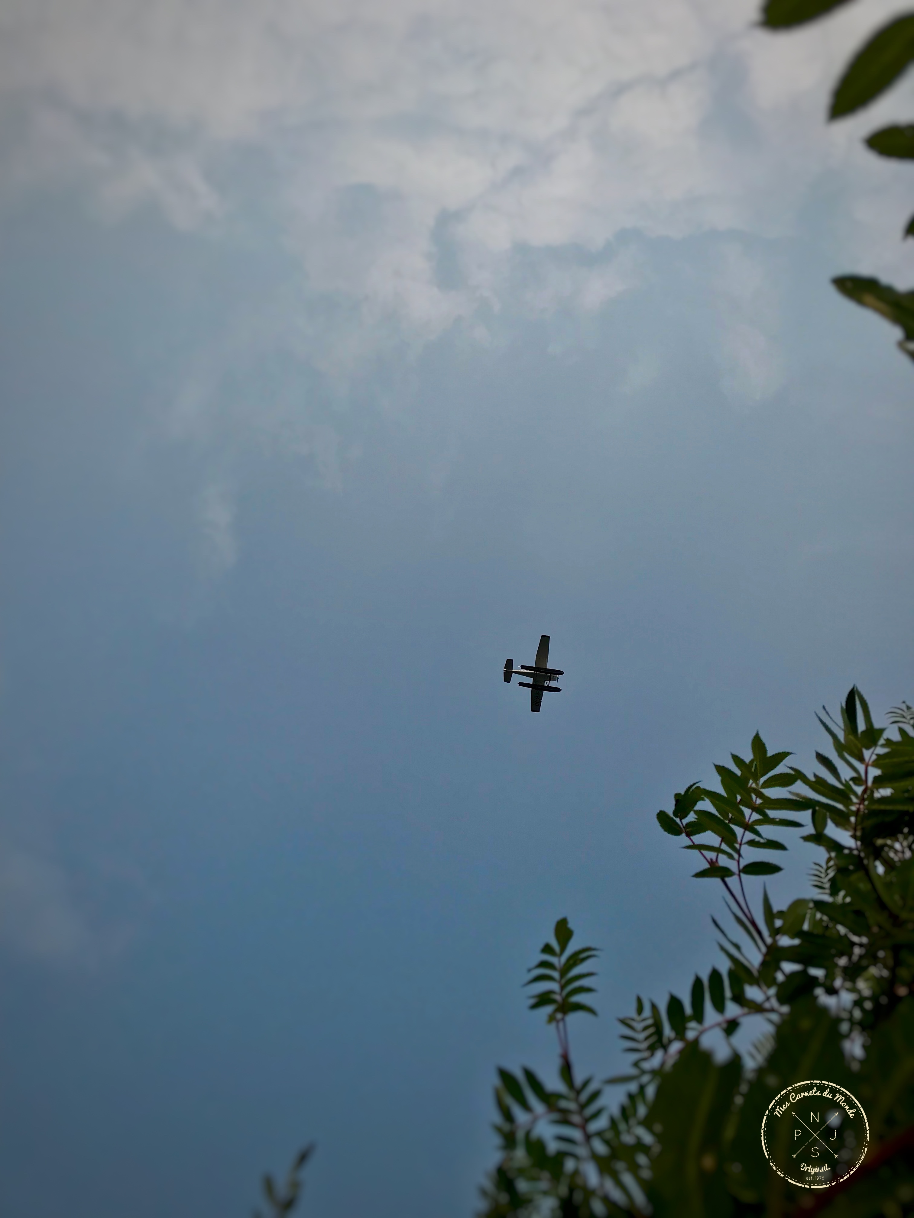 Dans un virage couillu serré face à la montagne de granite, il redresse sa trajectoire, aligne ses flotteurs et les amène doucement, mais sûrement, au contact de l’eau, jusqu’à créer de grandes gerbes d’eau qui ralentissent l’hydravion !