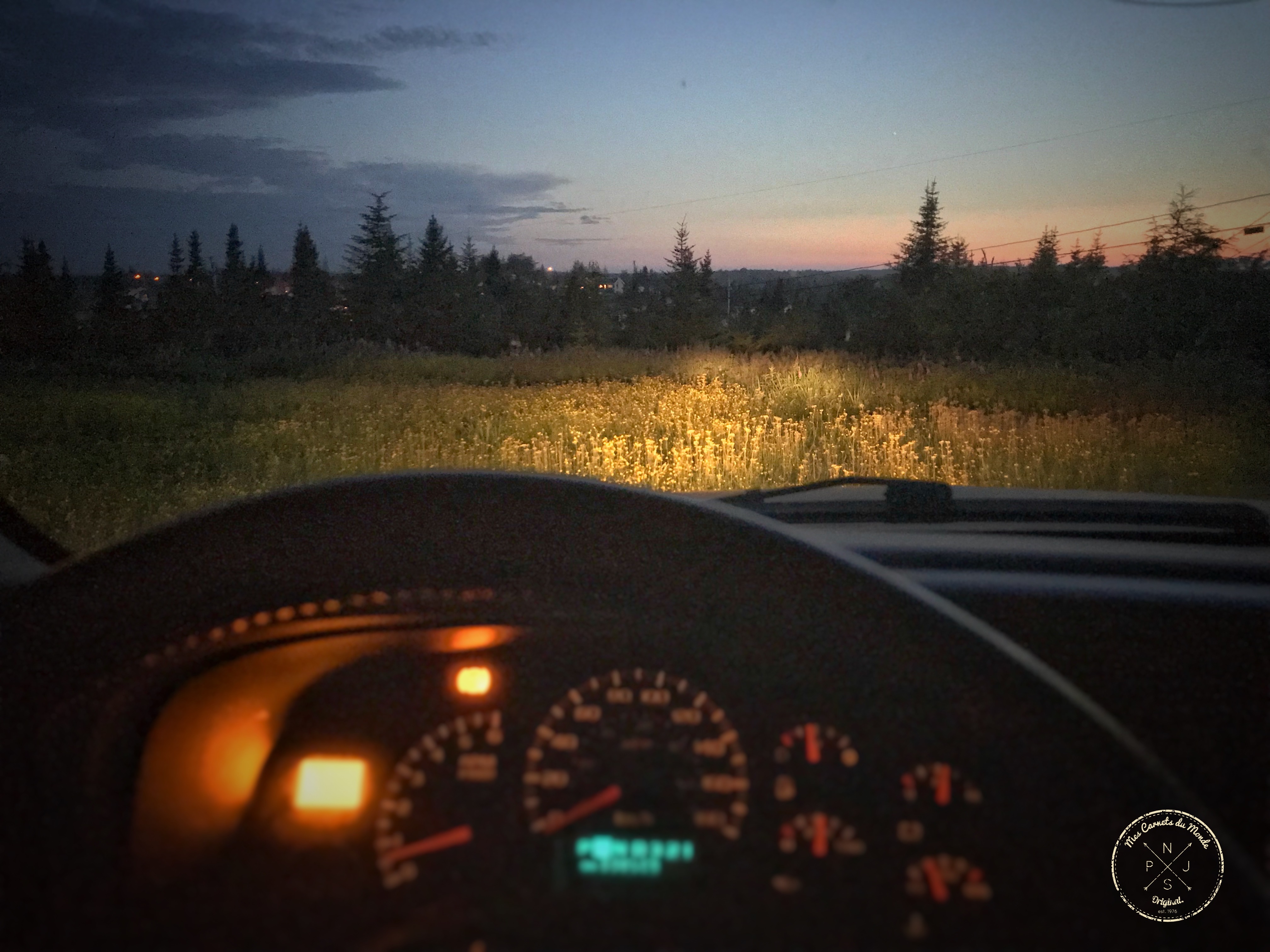 Mais bon, à croire que nous avons été efficaces, car 15 minutes plus tard, les glacières remplies et chargées dans le coffre, la remorque bien harnachée à l’arrière de notre pick-up, nous reprenons la route dans la nuit noire (“dans la nuit noire et obscure”).