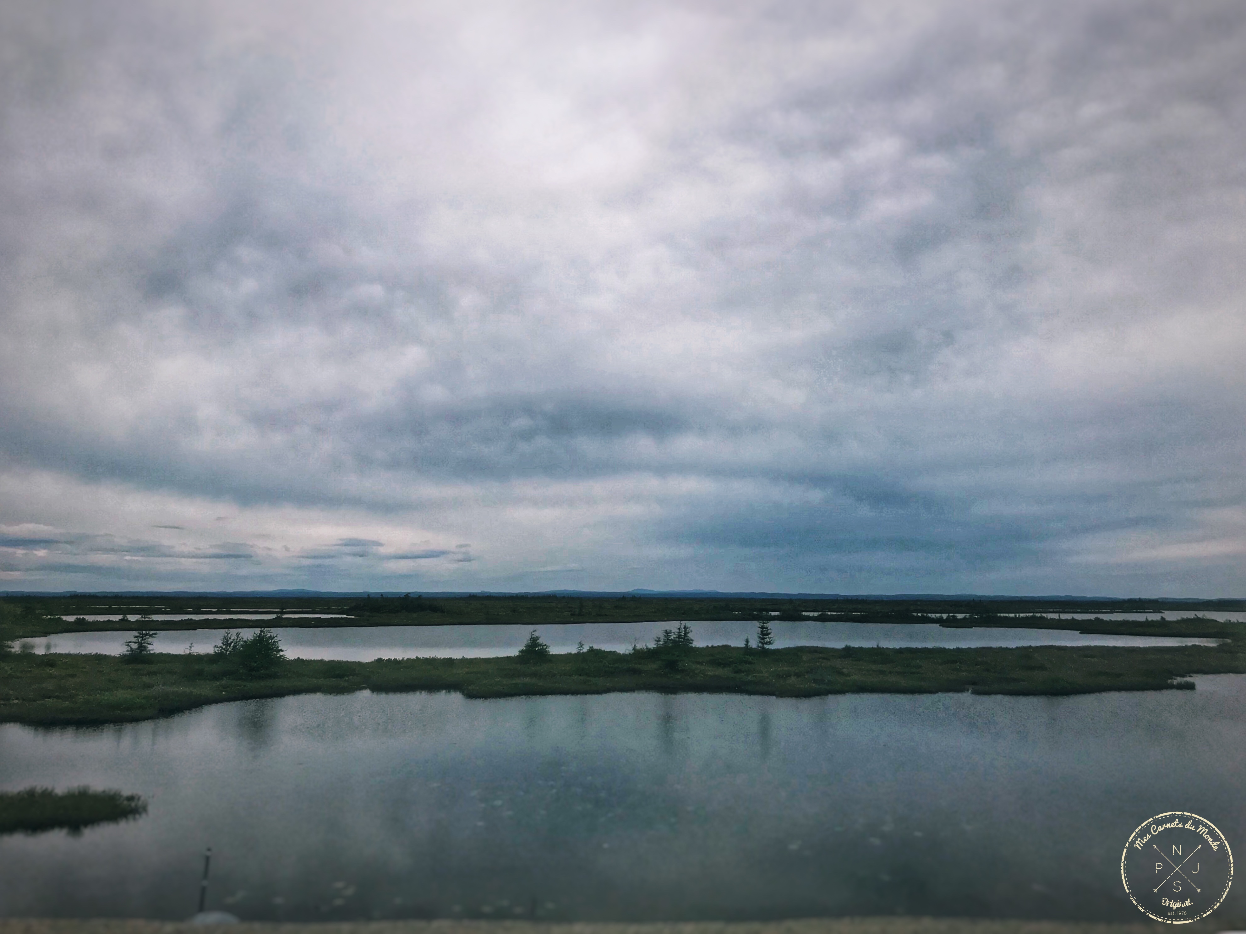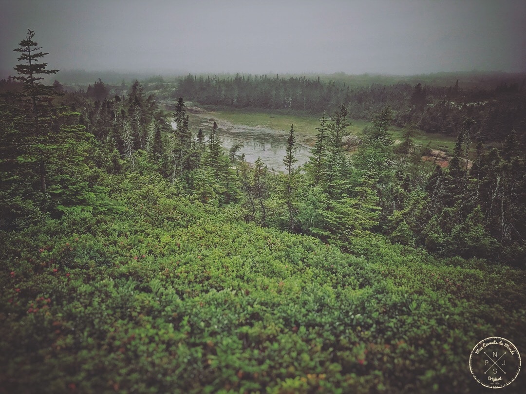 Réveillés par l’annonce du Capitaine, nous rassemblons nos affaires, ré-embarquons dans la voiture et nous re-voilà partis pour 6 heures de voiture (près de 520 kms… quasiment un Bordeaux-Paris), sur une route côtière – la route Jacques Cartier – serpentant le long de magnifiques paysages, avec d’un côté la mer (en même temps, c’est normal, la route est côtière…) – « la route des baleine » – et de l’autre une belle alternance de forêts, grands lacs ou encore d’immenses étendues de tourbières.