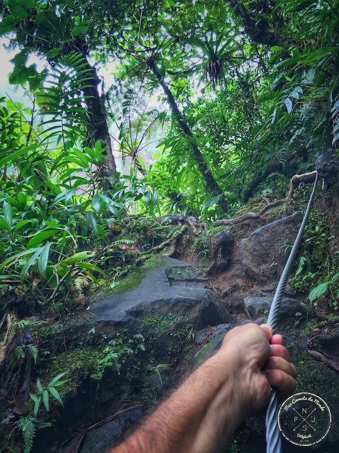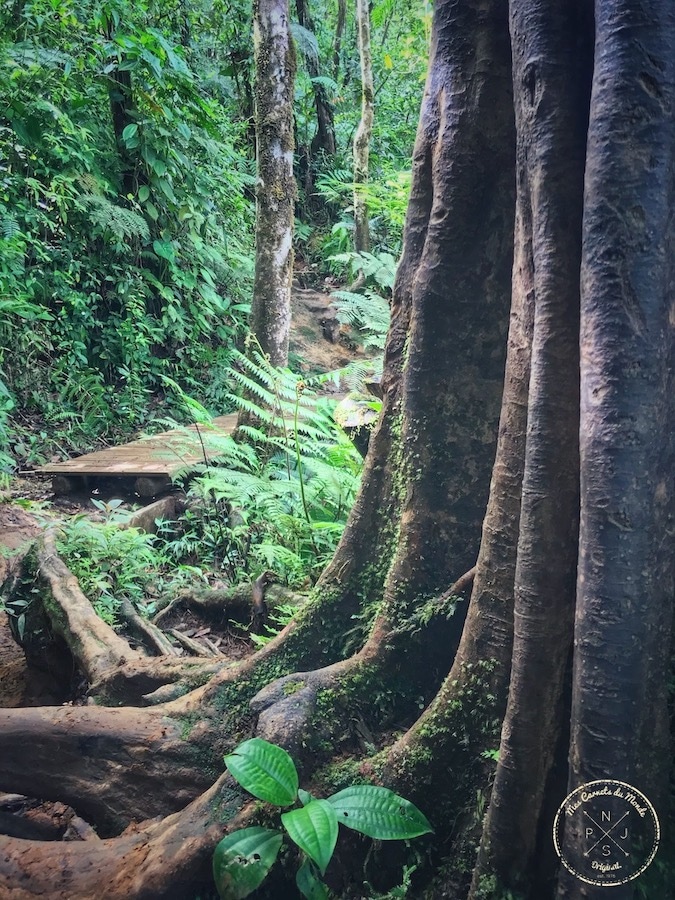 Ainsi, donc : émerveillés par la beauté sauvage de la forêt tropicale, notre moral est littéralement galvanisé. Et ce d’autant plus que la randonnée est particulièrement facile au début du sentier en direction de la 1ère chute.