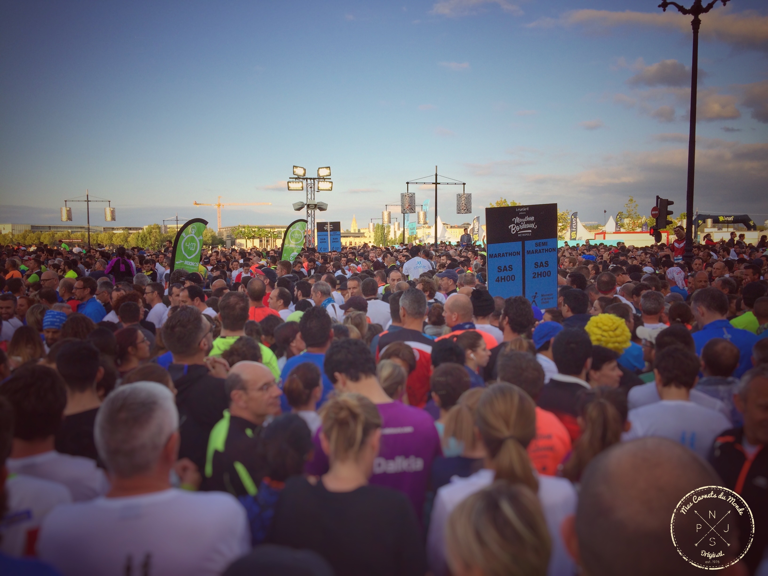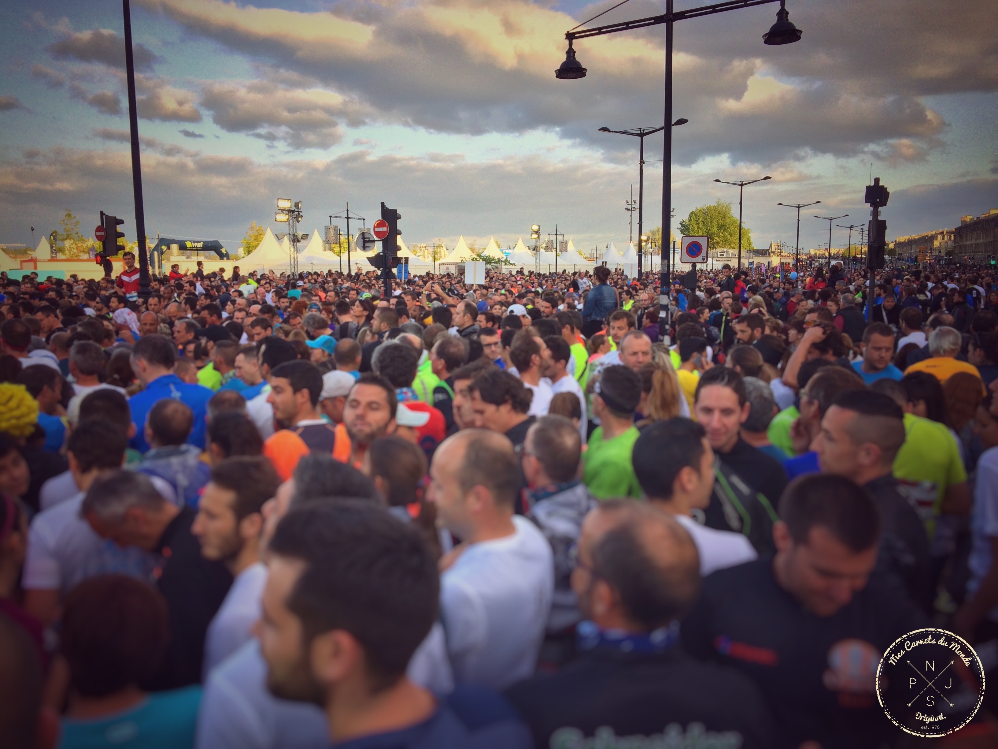 Ce qui fait l’originalité du Marathon de Bordeaux c’est que l’épreuve est nocturne ; en d’autres termes : puisqu’elle se déroule de nuit, cela signifie donc que qu’entre le moment où l’on se réveille (le matin) et le moment où l’on se retrouve sur la ligne de départ (le soir), on a donc tout le loisir de sentir la pression monter, lentement mais sûrement.