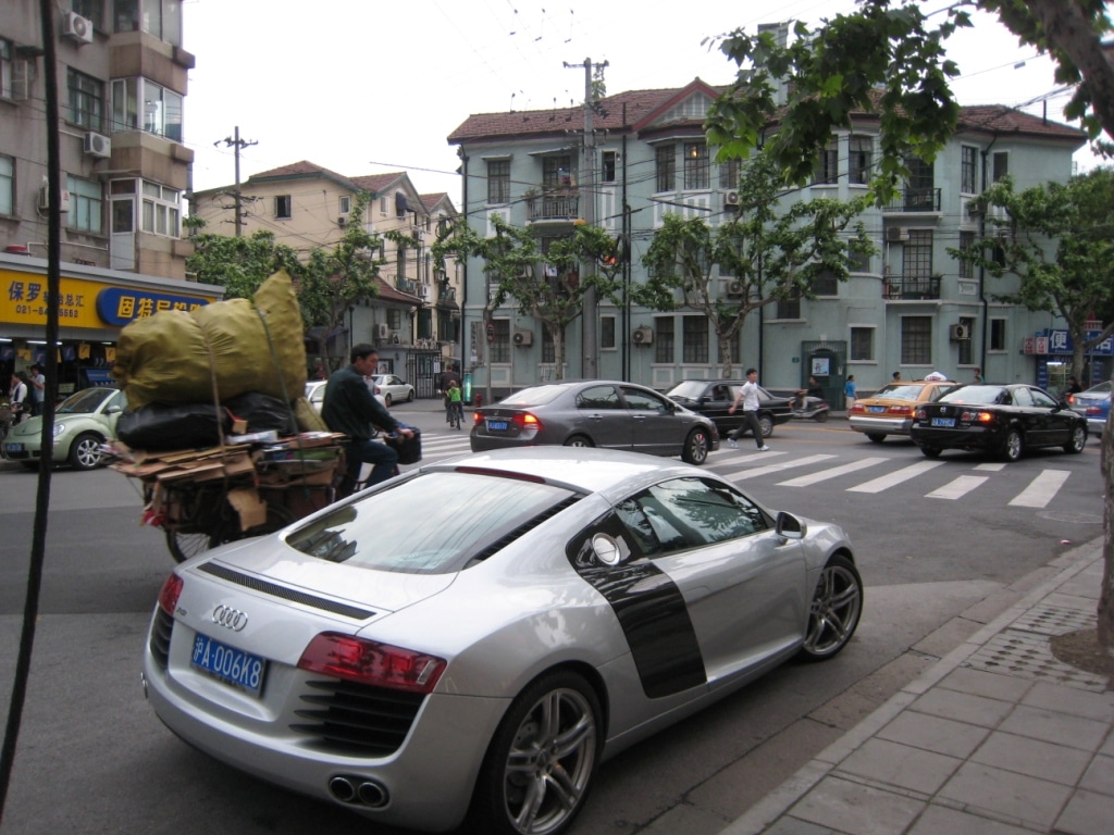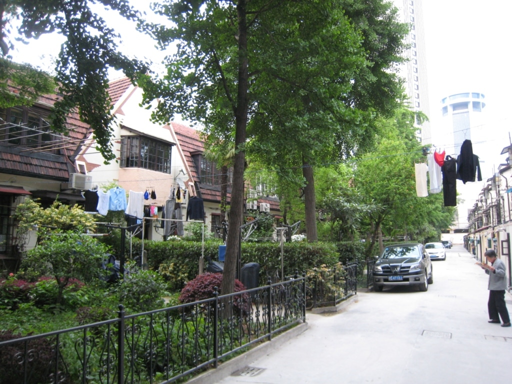 Si dans la concession française, aux rues bordées de platanes centenaires, on en trouve de vraiment magnifiques (avec petit jardin) et bien rénovées, celles de la vieille ville chinoise contrastent avec le reste du paysage urbain : elles dépassent rarement les 30 m2, la vaisselle se fait dans un évier dehors et une famille entière (parents, enfant -en théorie- unique, grands parents) s’y entasse ; entre 2 maisons face à face, le linge sèche, suspendu sur des tiges de bambous (les culottes et slips aussi… ici, la promiscuité induit de tout faire partager). L’étonnement cède place à l’amusement quand, au détour d’une des petites rues, on retrouve les Shanghaiens attablés à jouer aux cartes ou au Majong (ils sont incroyablement joueurs, c’est fou ! Au détour de ruelles, dans des petits locaux sobrement aménagés, ils sont en général tous affairés à jouer, ou à conseiller les joueurs quand ils ne sont que simple spectateurs !), ou quand une voiture de luxe croise un des pousse-pousses.