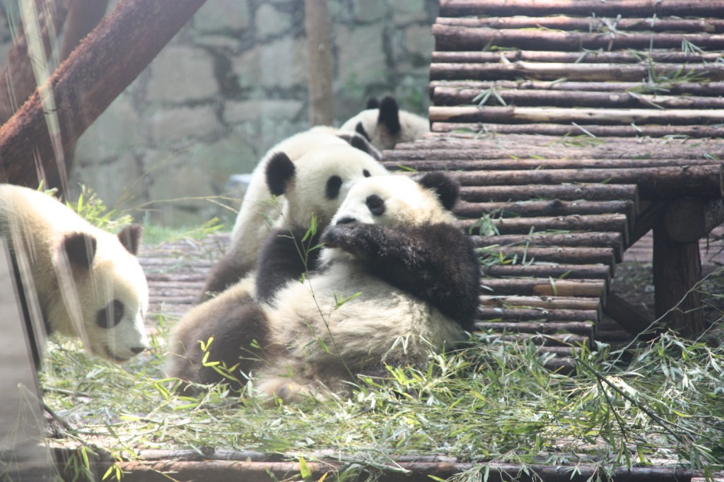 Les gens s’accaparent facilement les espaces vers, devenus espaces de vie : dans un parc, qui partage l’espace avec un zoo où quelques pandas s’esbaudissent à manger des tiges de bambous au soleil (ils ont la belle vie les pandas… mériteraient d’être fonctionnaires !),