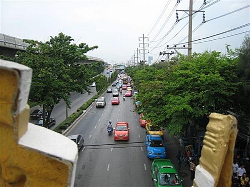 Bangkok est en plein essors. Des grues font lever des buildings toujours plus haut, les tours tutoient les vieilles maisons plus ou moins delabrées et les autoroutes suspendues traversent la ville en son milieu. Et pour rajouter un soupçon de béton au milieu de tout ça : le sky-train, lui aussi au dessus des artères principales de la ville, transporte ses voyageurs entre les buildings.